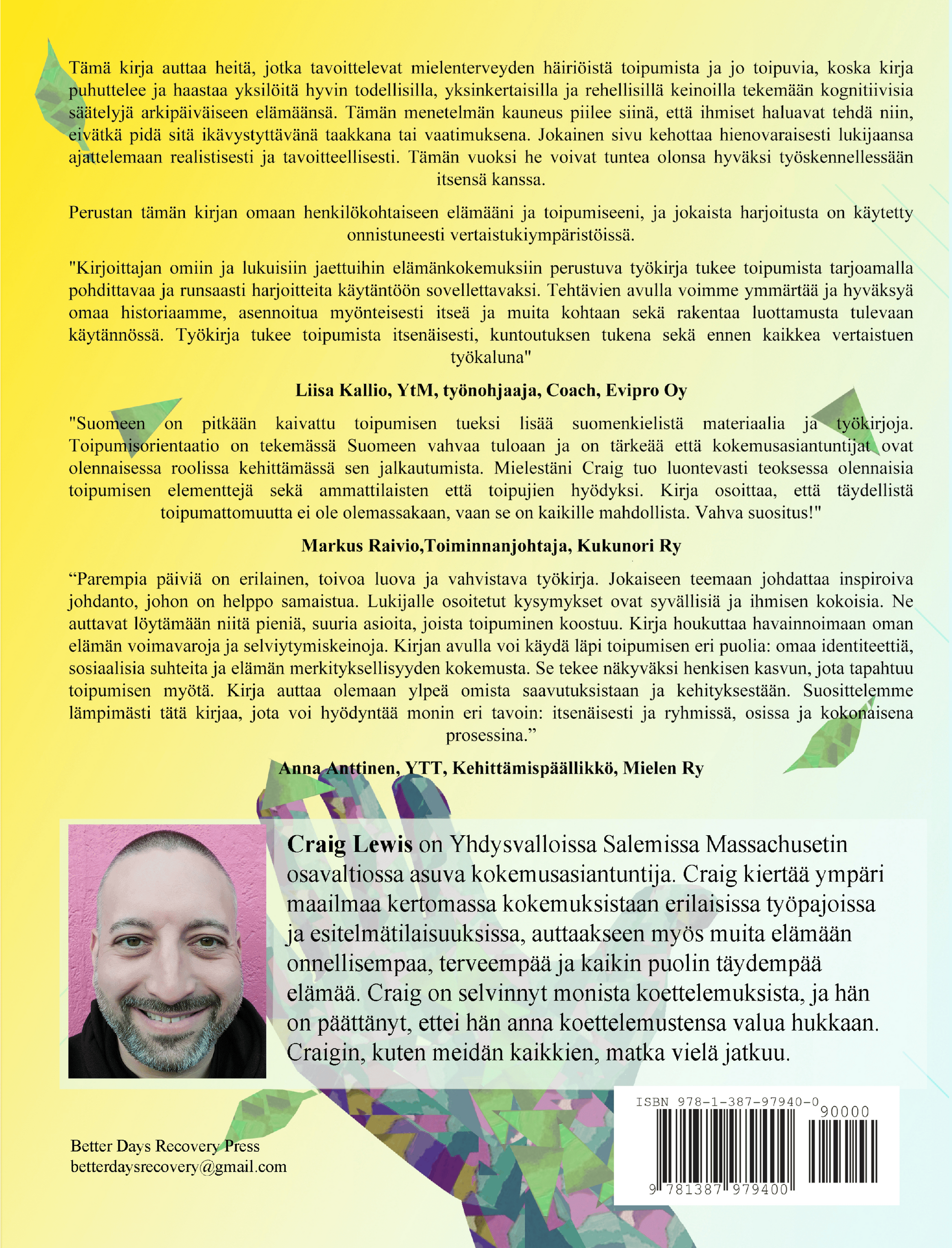 Perustan tämän kirjan omaan henkilökohtaiseen elämääni ja toipumiseeni, ja jokaista harjoitusta on käytetty onnistuneesti vertaistukiympäristöissä.